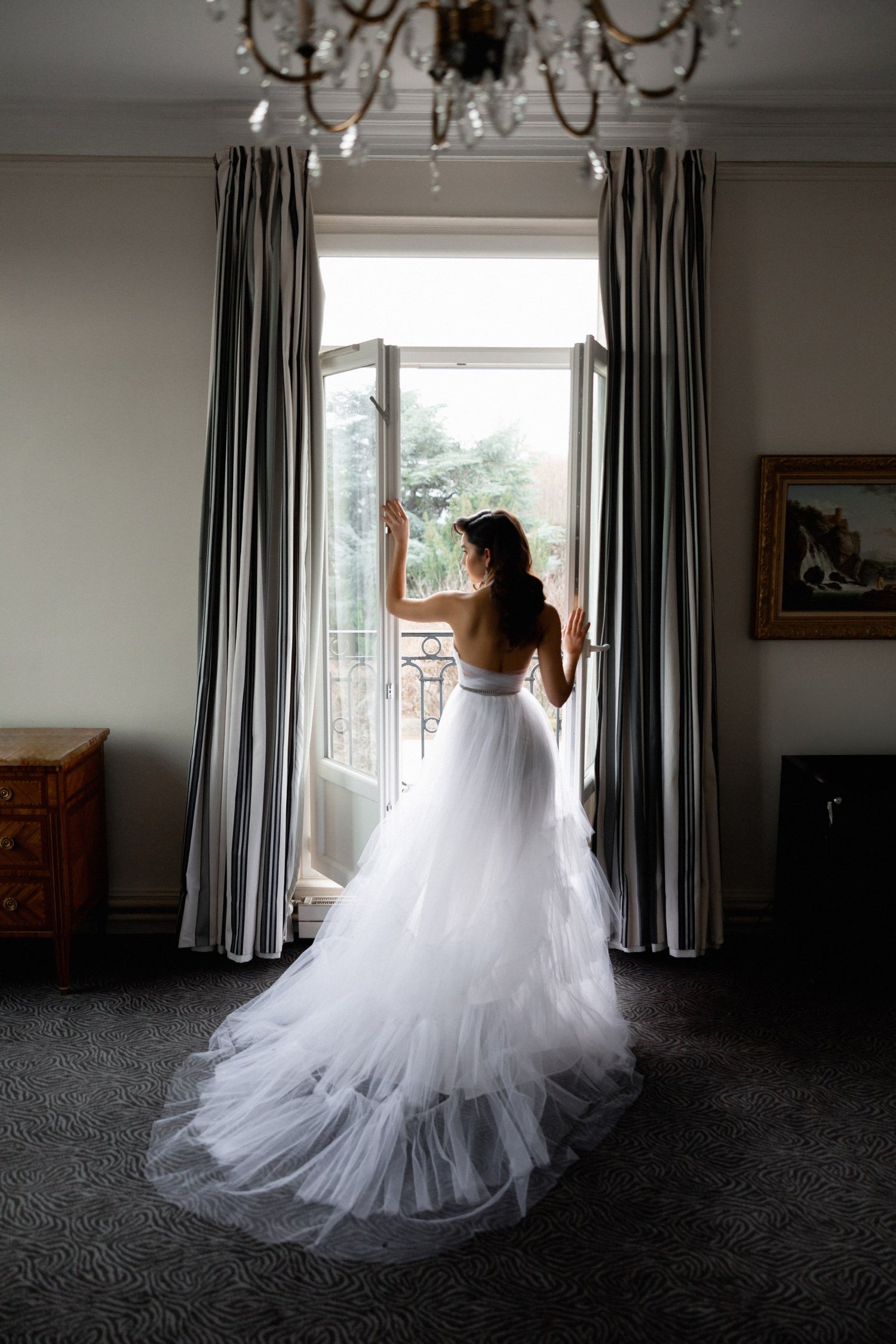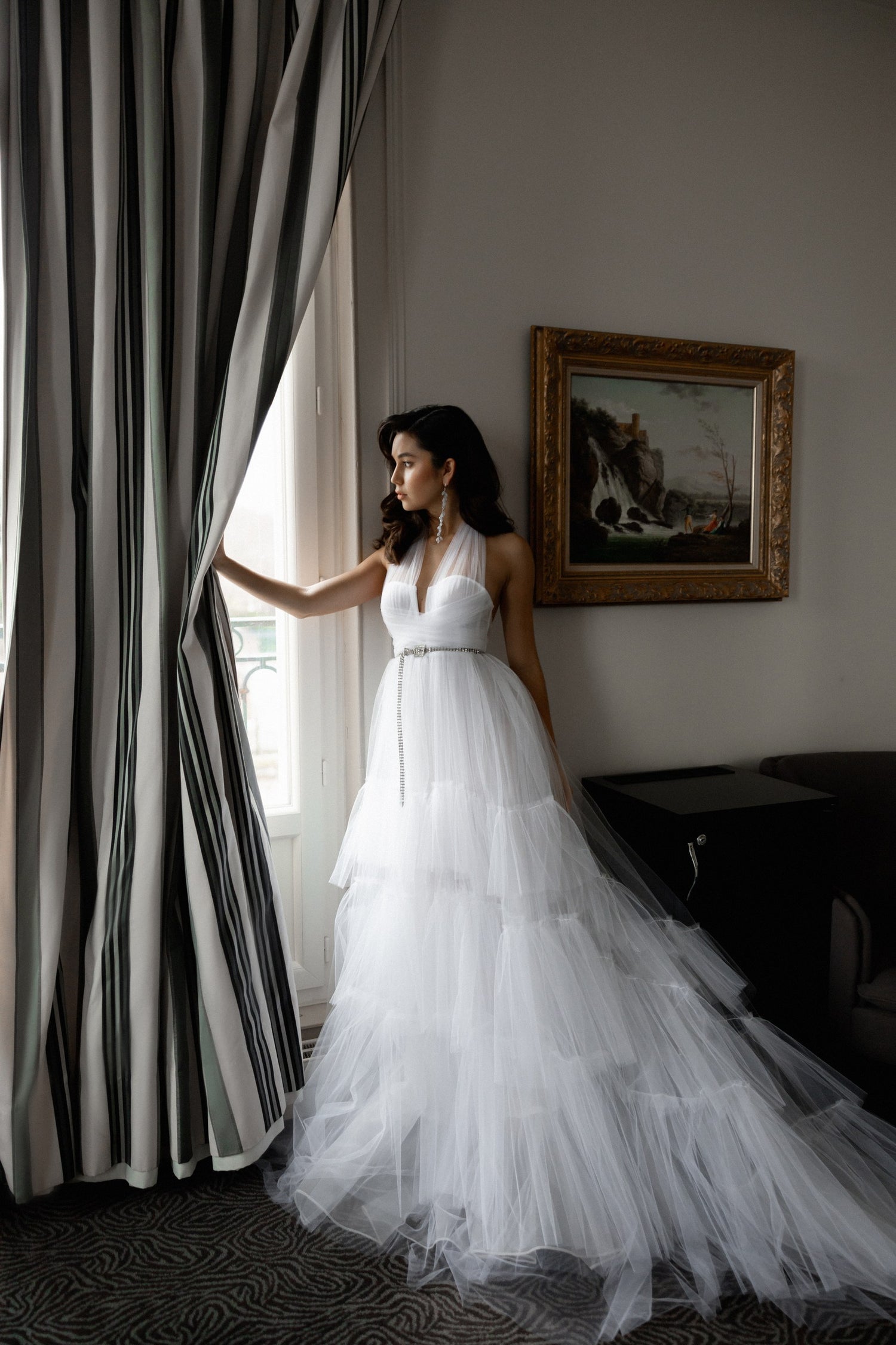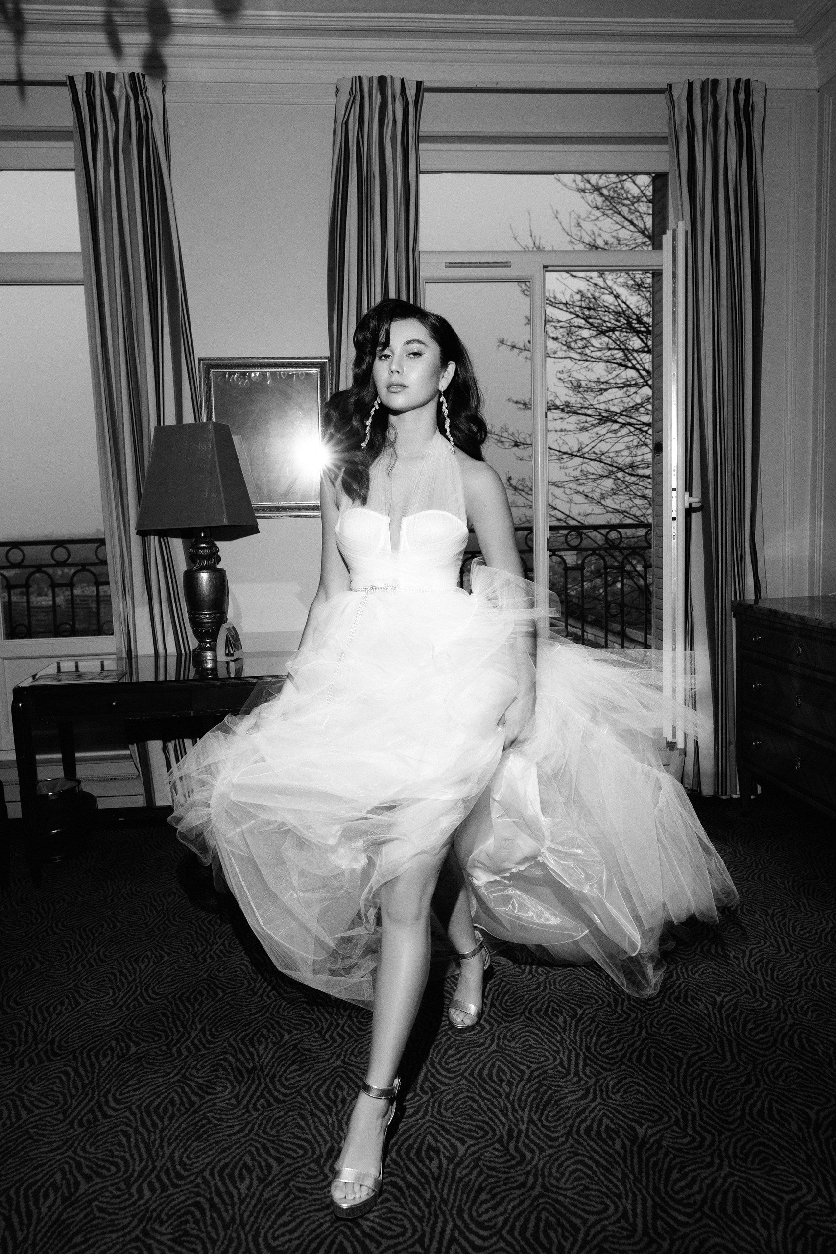 Dans la suite de son hôtel, Adelina profite d'un moment d'intimité. Plaisir des préparatifs, instant de recueillement ce sera bientôt le moment tant attendu d'enfiler sa robe de mariée.
